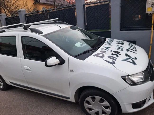 Maşină vandalizată pentru că a blocat accesul auto într-o curte şi nu a lăsat un număr de telefon. FOTO: Paul Racolţa