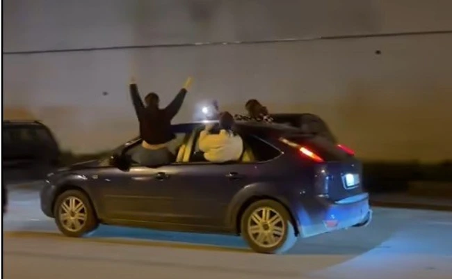 Incidentul a fost semnalat după ce polițiștii au observat un scurt videoclip postat online, în care se vede un autoturism rulând cu viteză redusă, cu muzica dată tare, iar pe toate cele patru geamuri sunt tinere care dansează.