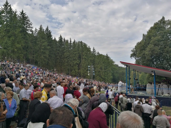 Zeci de mii de oameni au asistat miercuri, 15 august, la slujba oficiată de sărbătoarea Adormirii Maicii Domnului la Mănăstirea Nicula. Pelerinii, unii dintre ei sosiţi de la sute de kilometri, se roagă la Icoana făcătoare de minuni a Fecioarei Maria.