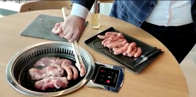 Pe acest grill încorporat în masă se pot prăji bucăți de carne de vită, carne de porc și cârnați. Clientul vine și își alege din vitrină ce dorește, își prăjește carnea cum dorește și o consumă”, a spus Cosmin Moldovan, preşedintele companiei.