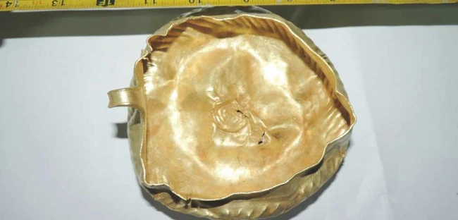 ”În urma percheziţiilor au fost ridicate 500 de bunuri arheologice (foto mai jos, credit foto: IPJ Cluj), respectiv monede, unelte şi arme antice din fier şi bronz, vase ceramice, inele, brăţări care ar proveni din detecţii neautorizate în zone cu patrimoniu arheologic, precum şi patru detectoare de metale, deţinute fără respectarea prevederilor legale. Totodată, poliţiştii au ridicat un vas din aur de aproximativ 320 de grame şi unelte, datate din epoca bronzului, bunuri arheologice susceptibile de clasare în categoria juridică Tezaur a patrimoniului naţional, evaluate la aproximativ 150.000 de lei, care ar fi fost detectate în zone cu patrimoniu arheologic de pe raza judeţului Bistriţa-Năsăud”, afirmă purtătorul de cuvânt al IPJ Cluj, Carmen Jucan.