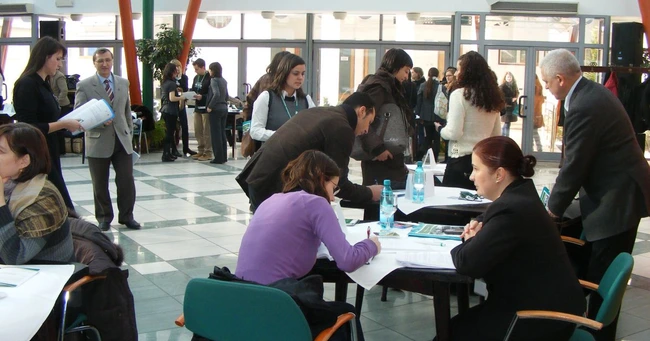 Puţin dezamăgită a plecat reprezentantul firmei Contafiscal Servicii, care sunt interesaţi în a-i pune să verifice înregistrarea corectă a documentelor fiscale. „Au venit doar doi studenţi cunoscători ai limbii germane”, ne-a spus Anca Olariu, consultant resurse umane.