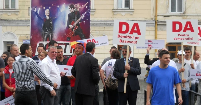 VIDEO Aproape o sută de clujeni la un miting anti-Băsescu