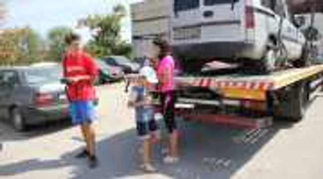 VIDEO Cluj: O familie din Bucureşti s-a blocat în autoturismul care fusese ridicat pentru parcare ilegală
