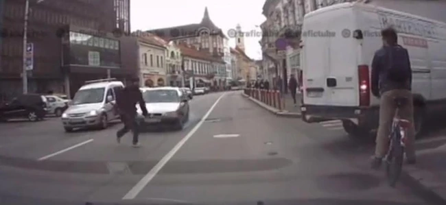 VIDEO Secundele care îţi pun în pericol viaţa. Cum a traversat o clujeancă strada