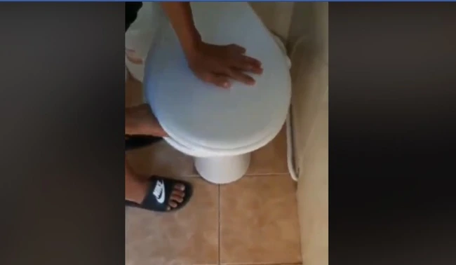 În final, pisica scapă din vasul de toaletă şi iese în curte. În tot acest timp, băiatul râde şi înjură, iar alt prieten filmează incidentul.