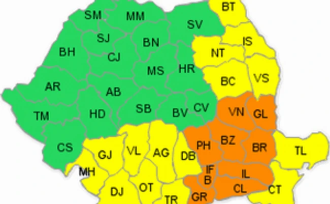 Avertizarea vizează judetele Giurgiu, Prahova, Călăraşi, Ialomiţa, Buzău, Brăila, Galaţi, Vrancea şi Ilfov unde va ninge abundent şi va fi viscol puternic, determinând diminuarea semnificativă a vizibilităţii şi depunerea zăpezii într-un strat însemnat.