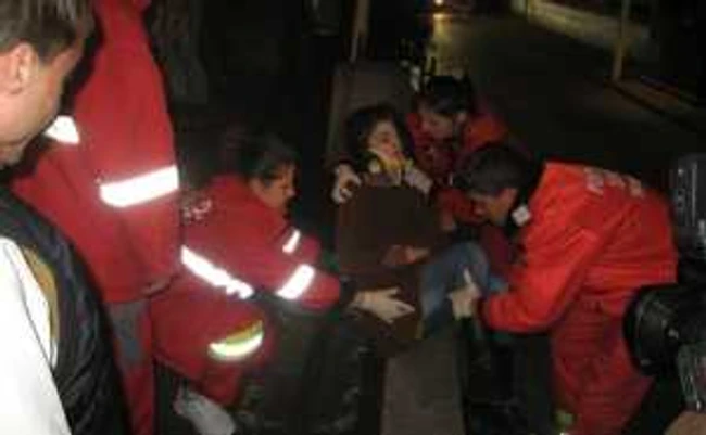 Şoferul (cel cu geacă maro aflat între cei de la Ambulanţă) se asigură că tânăra este bine