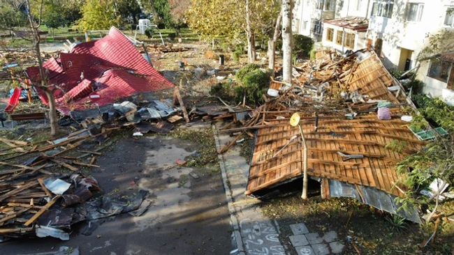 Cea mai gravă situație s-a înregistrat în cartierul constănțean Faleză Nord. Podul unui bloc a fost smuls de ciclon, pe o suprafață de 400 de metri pătrați și s-a prăbușit peste un loc de joacă, pe care l-a strivit efectiv. Bucăți uriașe din acoperiș s-au împrăștiat prin tot parcul, spărgând geamurile de la parterul blocului și blocând accesul în imobil și avariind trei autoturisme. Din fericire, nimeni nu a fost rănit.