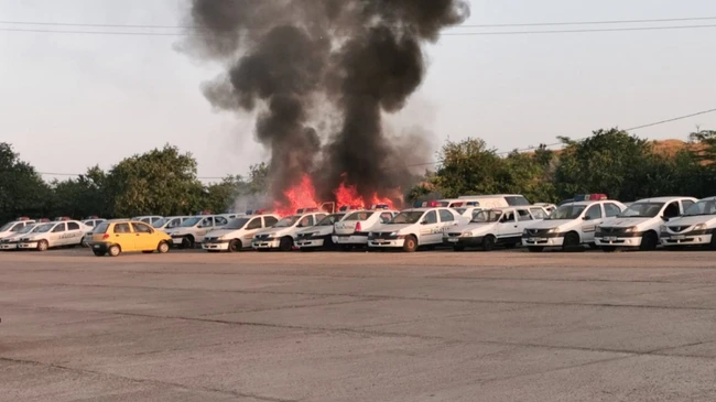 FOTO Incendiu în parcarea poliţiei. Focul, izbucnit la un microbuz, a afectat mai multe autospeciale