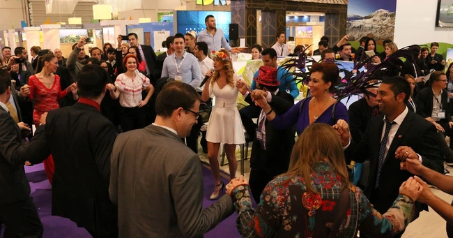 0La WTM London 2014, miercuri seară s-a încins o horă românească în toată regula, pe care mulţimea de vizitatori a savurat-o din plin, mai ales că s-a ciocnit şi tradiţionala ţuică românească.