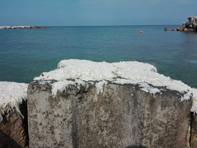 FOTO VIDEO Fenomen neobişnuit la Cap Aurora: pe stabilopozi au apărut alge albe