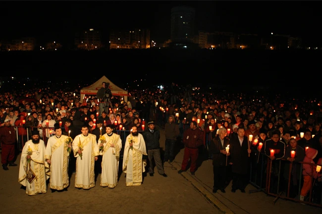 Seara, Înaltpreasfinţitul Teodosie va fi alături de enoriaşi la Constanţa. Utrenia (Slujba) Învierii va fi oficiată sâmbătă de arhiepiscopul Tomisului pe plaja Modern, începând cu ora 23.40. Credincioşii vor primi Sfânta Lumină adusă de la Ierusalim. La sfârşitul slujbei Învierii, ierarhul Tomisului va ţine un Cuvânt Pastoral.