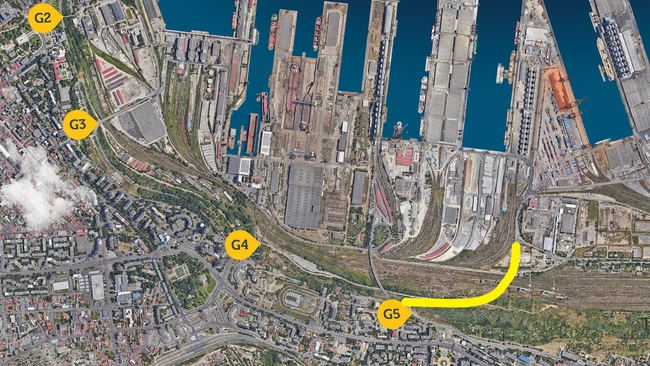 Potrivit „Constanța Port”, pasajul este amplasat pe drumul de legătură dintre Poarta 5 și platforma portuară din zona Molului 3 și asigură traversarea liniilor de cale ferată.