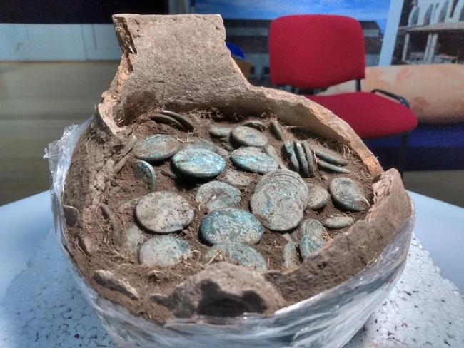 „La finalizarea procedurii, s-a constatat faptul că tezaurul este alcătuit din 610 monede romane provinciale de bronz și cinci obiecte realizate din fier, întregi sau fragmentare. Majoritatea monedelor aflată în partea superioară a vasului se păstrează într-o stare de conservare relativ bună, pe când cele surprinse în partea inferioară au fost afectate mai mult sau mai puțin de prezența pieselor de fier”, anunță MINAC.