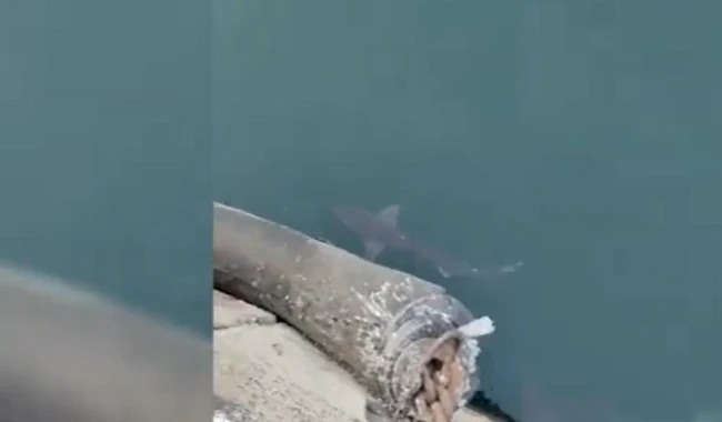 0Un rechin a fost surprins sâmbătă, 3 februarie, în portul Constanța, în timp ce înota pe lângă dig, foarte aproape de suprafața apei.