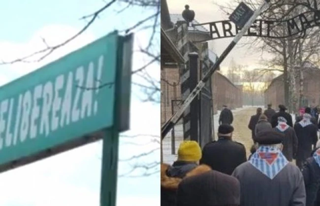 0O societate de stat din judeţul Prahova a reprodus în limba română pe poarta instituţiei mesajul de la intrarea în lagărul de concentrare nazist Auschwitz.