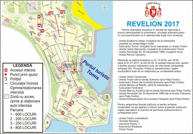Pentru realizarea accesului în condiţii de siguranţă a tuturor participanţilor la eveniment, circulaţia autovehiculelor, în zona peninsulară, va fi restricţionată după cum urmează: