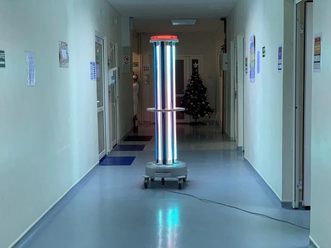 0Spitalul Cinic de Boli Infecţioase Constanţa are un robot pentru dezinfecţia aerulului şi suprafeţelor, care funcţionează pe bază de lumină UVC, având o eficienţă de peste 99% în distrugerea viruşilor şi bacteriilor.