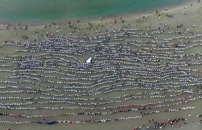 La ora 21, pe plajă se adunaseră 6.314 dansatori, depăşind recordul de 5.614 persoane stabilit în 2012 la Volos, în Grecia. Totuşi, arbitra Guinness a refuzat să treacă la omologarea recordului, motivând că este prea întuneric ca să mai poată număra participanţii în timpul dansului. Acesta ar fi durat 5 minute, având o coregrafie simplă, învăţată la repetiţii, arătată pe ecrane şi dictată la microfon.