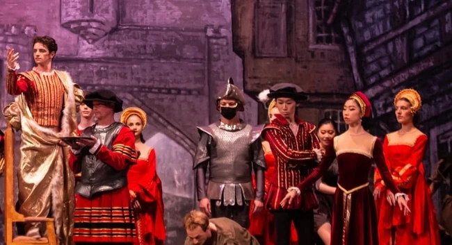 Secvenţă din „Prinţ şi Cerşetor”. Ştefan Răuţ, balerinul cu mască Foto: TNOB
