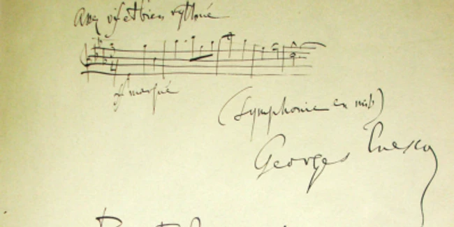 Semnătura lui George Enescu şi micul pasaj muzical scris în Cartea de Onoare Sursa capodopere2019.ro