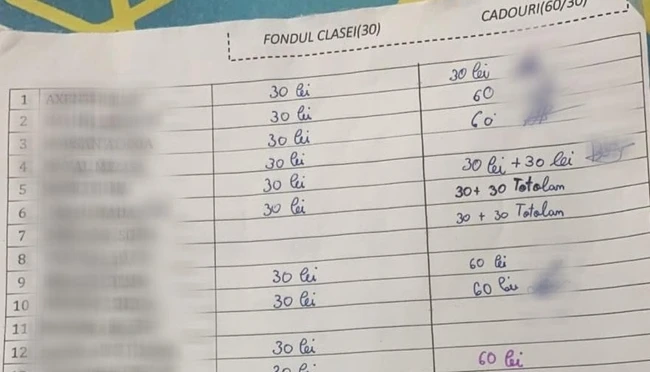 Tabel cu „fondul clasei“ şi „cadouri“, făcut public de Asociaţia Elevilor Constanţa. Reacţia Inspectoratului Şcolar