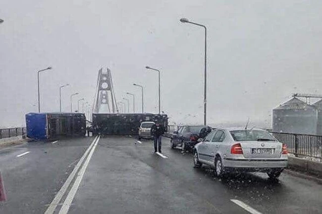 Podul nou de la Agigea, care este în administrarea Administraţiei Porturilor Maritime Constanţa, traficul a fost blocat zeci de minute în după-amiaza zilei de joi, 18 ianuarie.
