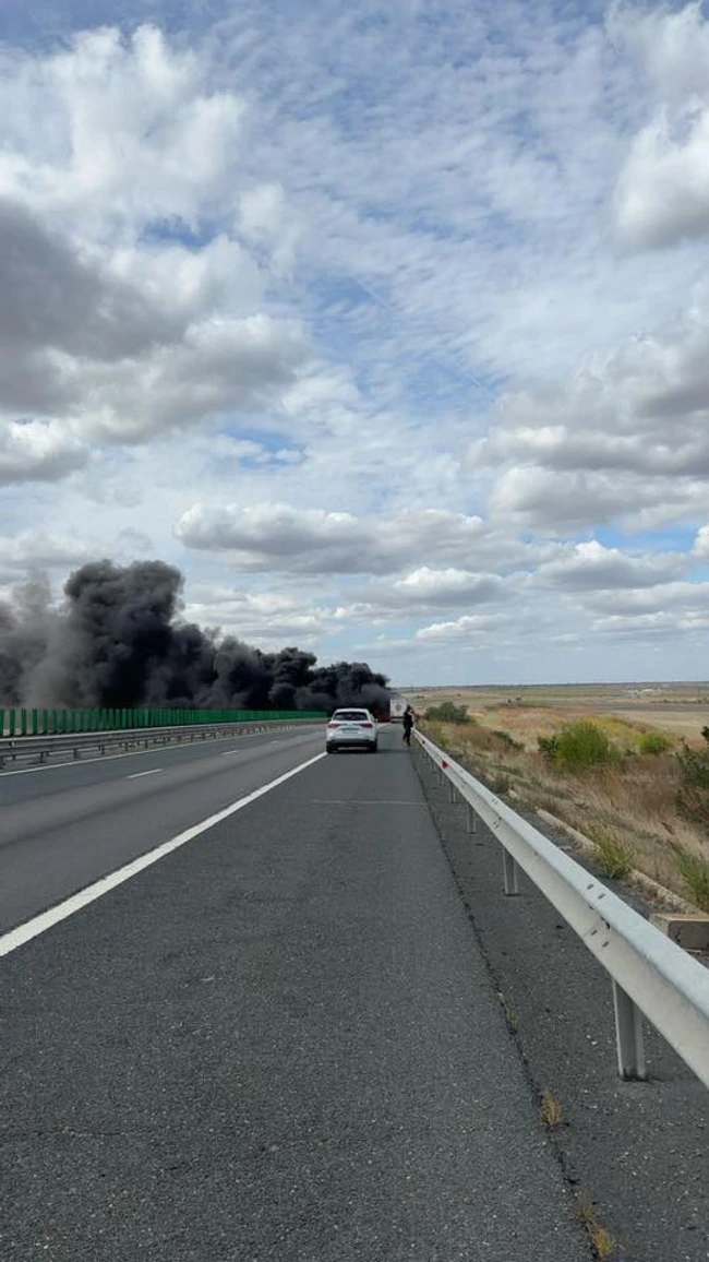 „Astăzi, 26 septembrie a.c., la ora 13:10, am fost sesizaţi prin apel 112 cu privire la faptul că un camion a luat foc pe Autostrada A2, la kilometrul 198-199, în apropierea localităţii Murfatlar, pe sensul de mers către Bucureşti. Din cauza incendiului, circulaţia este afectată pe ambele sensuri de deplasare”, au transmis reprezentanţii Inspectoratului de Poliţie Judeţean (IPJ) Constanţa.