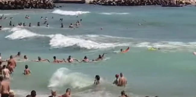 VIDEO Lanţ uman pentru aducerea la mal a trei salvamari care intraseră în apă să aducă la mal un bărbat băut