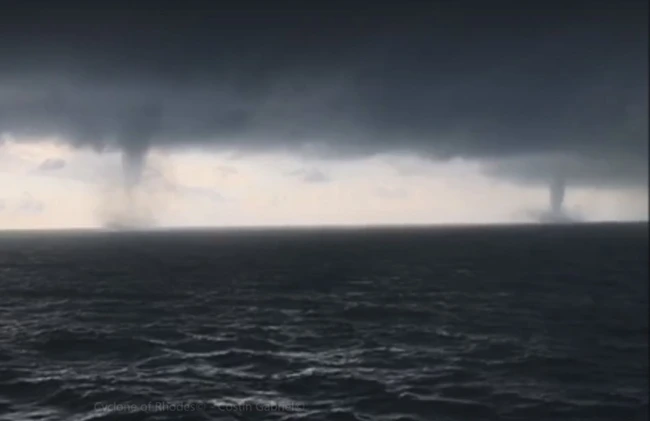 Imaginile au fost surprinde în cursul zilei de 28 iulie, în largul Mării Negre. Filmul a fost realizat de un angajat al unei platforme petroliere şi a fost postat pe pagina de Facebook cu numele Cyclone of Rhodes.