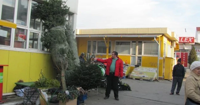 Brazi uriaşi, într-o piaţă din Craiova. Comercianţii au adus pomi din Danemarca, pe care îi vând cu 600 lei