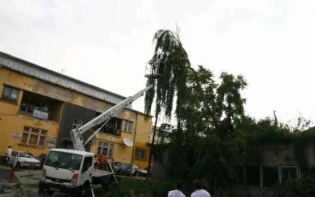 Patru muncitori de la Regia Autonomă a Domeniului Public şi Fondului Locativ (R.A.A.D.F.L.) au fost mobilizaţi în această dimineaţă să taie o salcie considerată deja periculoasă.