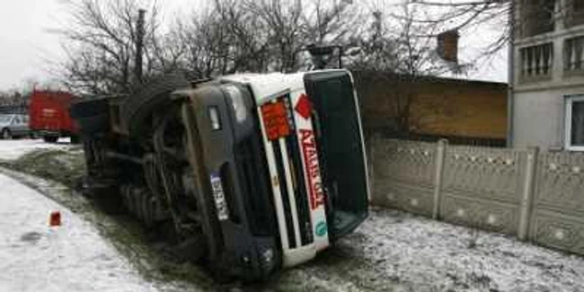 0Şoferul maşinii care transporta combustibil a apăsat prea tare pedala de acceleraţie, deşi pe carosabil se formase polei.