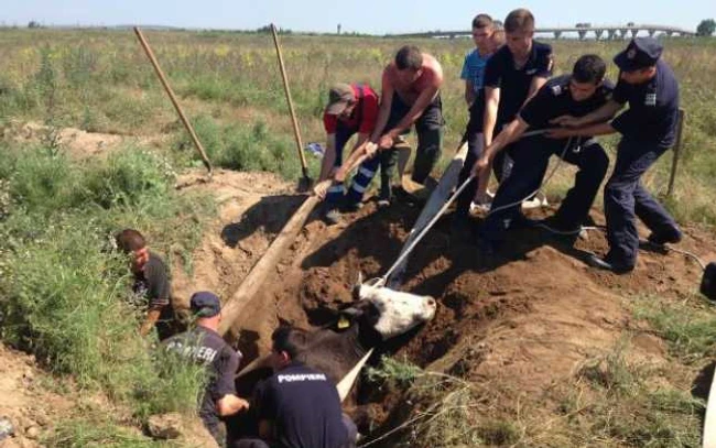 Doiniţa se afla la păscut pe un câmp la marginea Craiovei, în grija unui văcar. Vaca a căzut într-o groapă adândă de doi metri, iar ţăranul a sunat imediat la pompieri şi a cerut ajutor. „S-a săpat la lopată şi la mâini şi am improvizat un dispozitiv făcut din furtune şi din cordiţe şi am tras-o deasupra malului”, a declarat Daniel Petrescu, reprezentant al Secţiei de Pompieri Craiova.