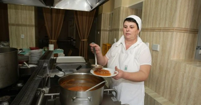 Muncea şi atunci pe rupte, pentru că-i veneau la masă în jur de 140 de copii. Dar măcar împărţea treaba cu o colegă, o zi fiind una la serviciu, o zi cealaltă. Acum e de una singură. Găteşte zilnic, deoarece e obligatoriu ca mâncarea să fie proaspăt preparată. Are la prânz 40 de elevi şi vreo 12 adulţi.