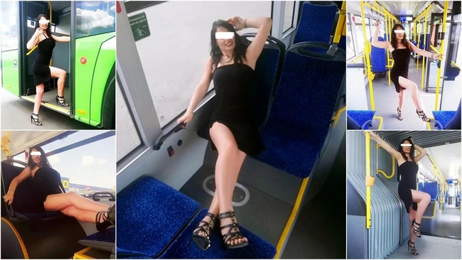 Tânăra a pozat în mai multe ipostaze: fie pe scările autobuzului, fie ţinându-se de câte o bară sau tolănită pe scaunele tapiţate. Şoferul a urmărit încântat tot ce s-a întâmplat la el în autobuz. Nu avea habar că doar după câteva ore avea să dea explicaţii în faţa şefilor.