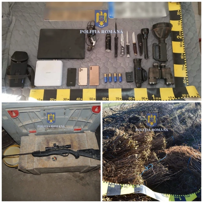 „Polițiștii au identificat bunuri interzise la deținere, respectiv o armă airsoft neletală cu 3 cutii de diaboluri, 4 cartușe de vânătoare de 12 mm, 6 plase de pescuit comercial în lungime de 750 de metri și 3 plase monofilament în lungime de 100 de metri, acestea fiind ridicate în vederea continuării cercetărilor.
