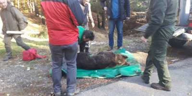 Drama unui pui de urs lovit de o maşină pe o şosea din Munţii Vrancei. Animalul a fost tranchilizat după 12 ore de la accident