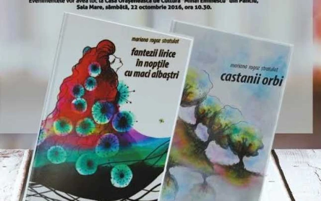 0Sâmbătă, 22 octombrie 2016, scriitoarea Mariana Rogoz Stratulat îşi va lansa cele mai recente volume de poezii, intitulate „Fantezii lirice în nopţile cu maci albaştri“ şi „Castanii orbi“.