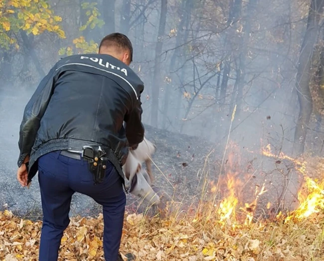 FOTO Doi agenţi de poliţie au făcut muncă de pompieri. Ei s-au luptat cu flăcările într-o pădure