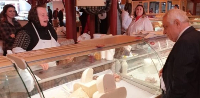 El a stat de vorbă cu comercianţii şi producătorii de acolo şi a cumpărat brânză.