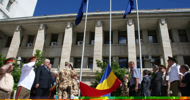 De altfel, încă de aseară s-a desfăşurat ceremonia de coborâre a drapelului României şi predarea acestuia pentru slujba de sfinţire preotului garnizoanei, iar dimineaţă drapelul României a fost ridicat pe catargul din faţa Prefecturii judeţului Vrancea, în acordurile imnului naţional, în prezenţa autorităţilor judeţene şi a unui public numeros.