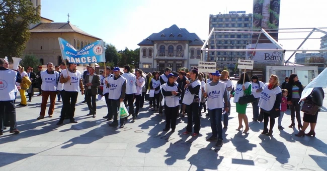 Sindicaliştii din învăţământul vrâncean au protestat azi, timp de două ore, în Piaţa Unirii din Focşani, nemulţumiţi de nerespectarea promisiunilor de către guvernanţi.