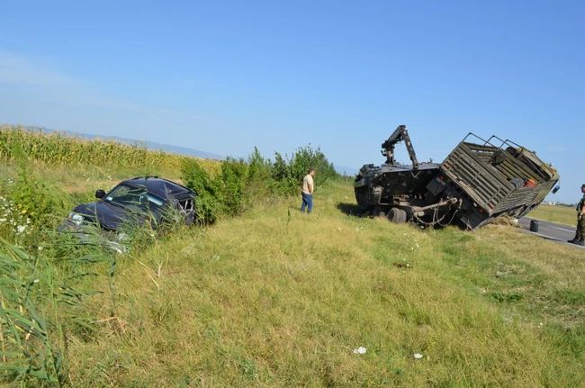 Maşină a armatei, în şanţ după o coliziune cu un autoturism de teren