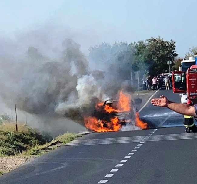 Un autoturism a luat foc luni dimineaţă, pe E85, la ieşirea din comuna Goleşti (Vrancea) spre Bucureşti. Din fericire, şoferul maşinii a reuşit să se salveze.