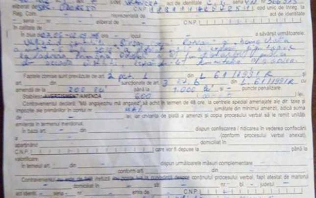 Cosmin Răzvan Bîrsan, un tânăr din oraşul Odobeşti, s-a trezit amendat cu suma de 600 de lei, de la poliţia oraşului unde locuieşte.