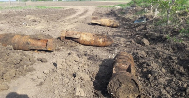 0Prima bombă a fost descoperită de un bărbat care efectua lucrări pe un teren aflat în vecinătatea drumului european, la ieşirea din Focşani.