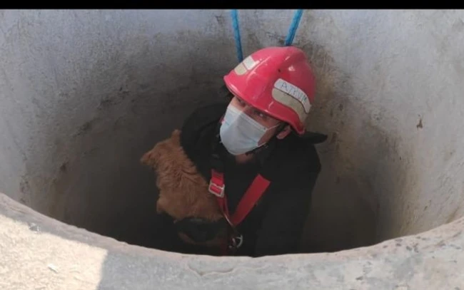 VIDEO Cum a fost salvat un câine după ce a căzut într-o fântână adâncă de 25 de metri
