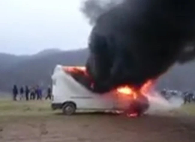 VIDEO Maşină în flăcări la un târg tradiţional de vite. Politicienii aflaţi în campanie electorală tocmai plecaseră din zonă